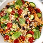 These healthy meal prep recipes are my favorite ones to pack for lunch. They’re filled with fresh veggies and herbs, so they’re light and flavorful, but ingredients like whole grains, beans, chickpeas, and/or avocado make them substantial enough to fill me up.