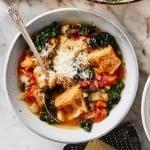 - Parmesan cheese – Simmer a Parmesan rind in the soup to add rich, nutty flavor, and serve with grated Parmesan on top. If you’re vegetarian, be sure to look for a brand made with vegetarian enzymes (BelGioioso makes a good one). If you’re vegan, feel free to skip it.